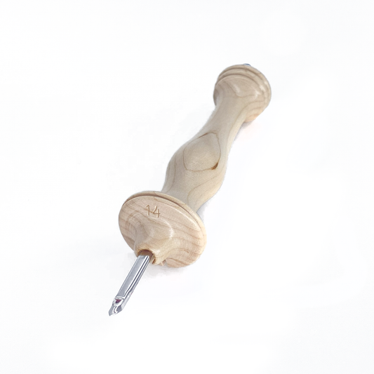 The Oxford Punch Needle is widely considered to be the gold standard in punch needles and has revolutionized the craft of punch needle rug hooking. The tool, designed by Amy Oxford, a renowned punch needle teacher and artist, is often praised for its ergonomic design, durability, and suitability for both beginners and professional punch needle artists. The punch needles come in five lengths, corresponding to five different loop heights, and two widths, regular point and fine point.