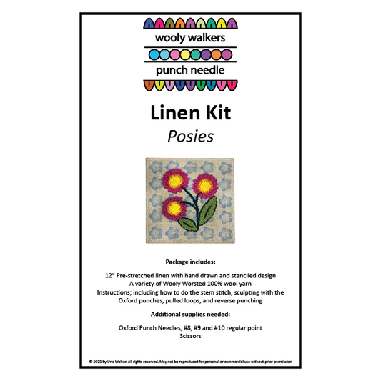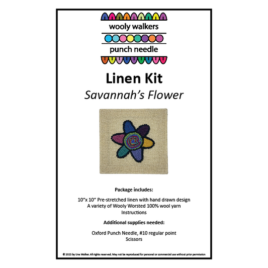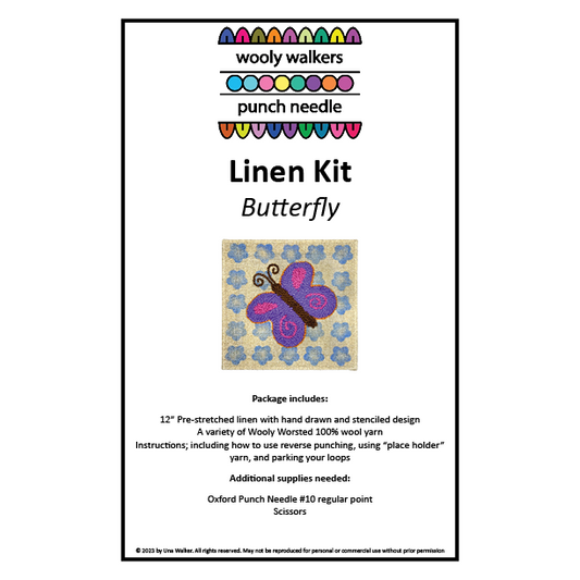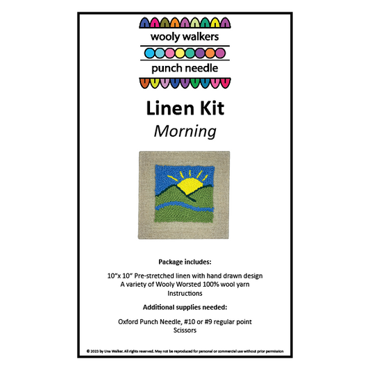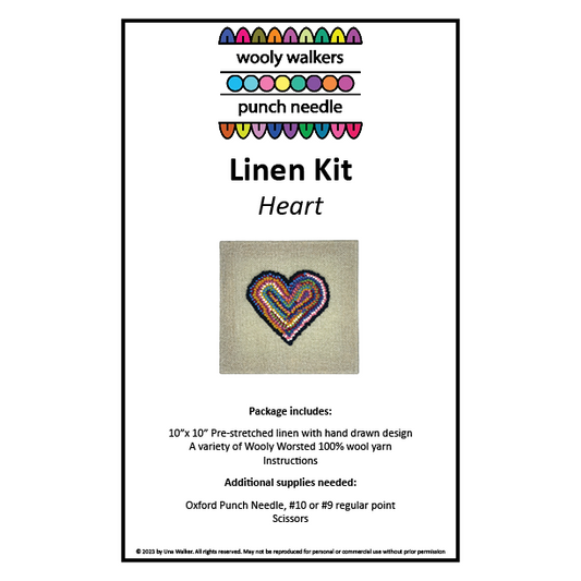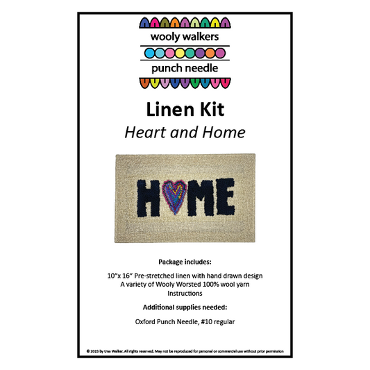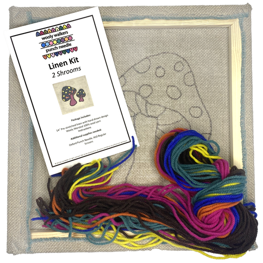 These punch needle kits come with a fun design that is already drawn on a pre-stretched piece of our primitive linen. Along with a variety of yarn and detailed instructions, the only tool you will need to add to complete the project is your punch needle. Since the linen is pre-stretched on a wood frame, once you have finished punching it will be ready to hang!
